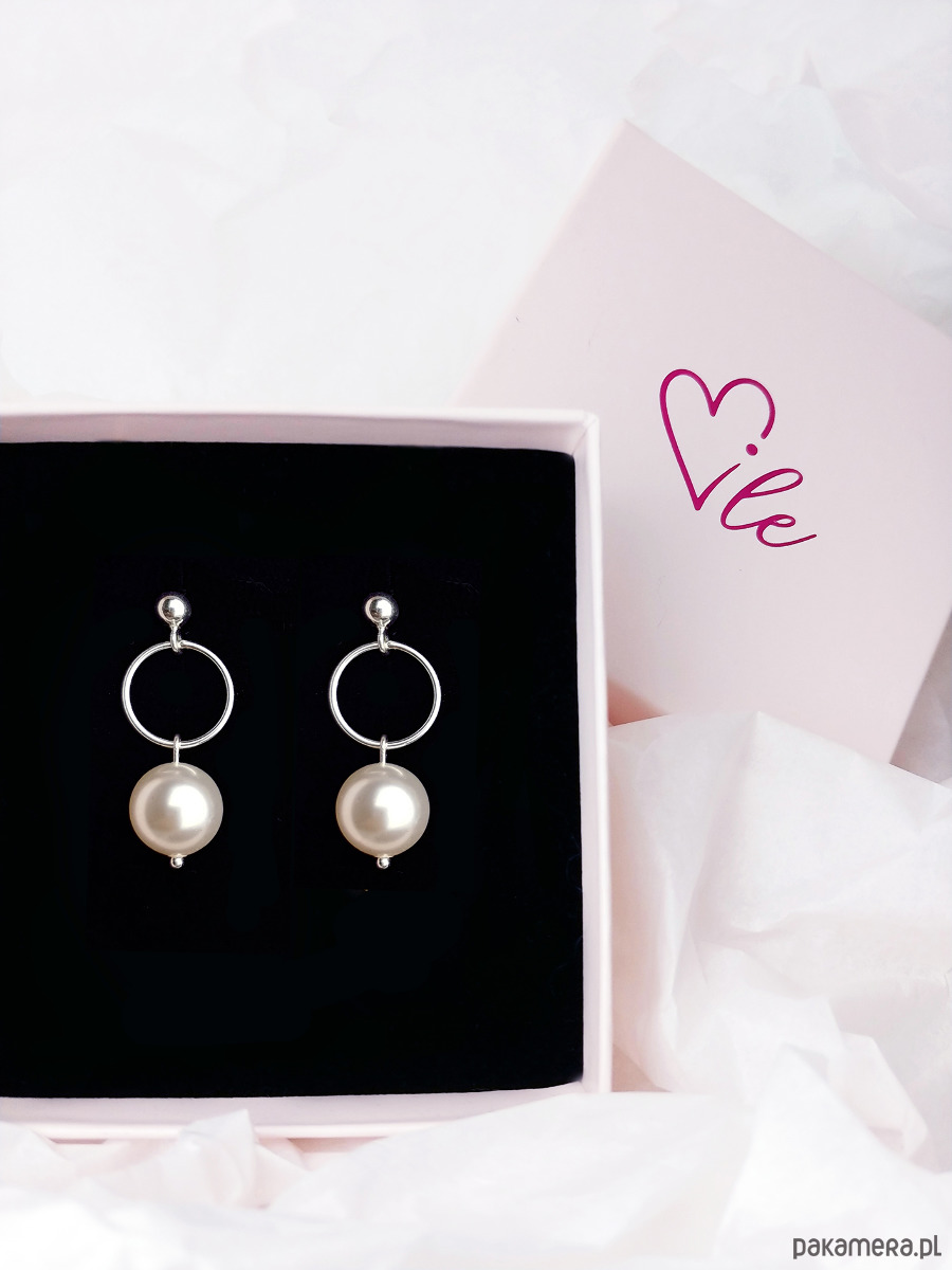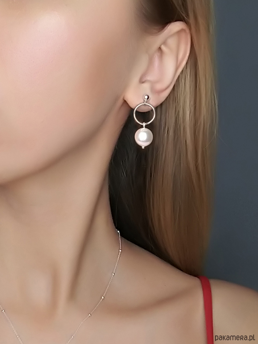 Delikatne kolczyki wykończone subtelnym kółeczkiem oraz perełką Swarovski® w kolorze crystal white.