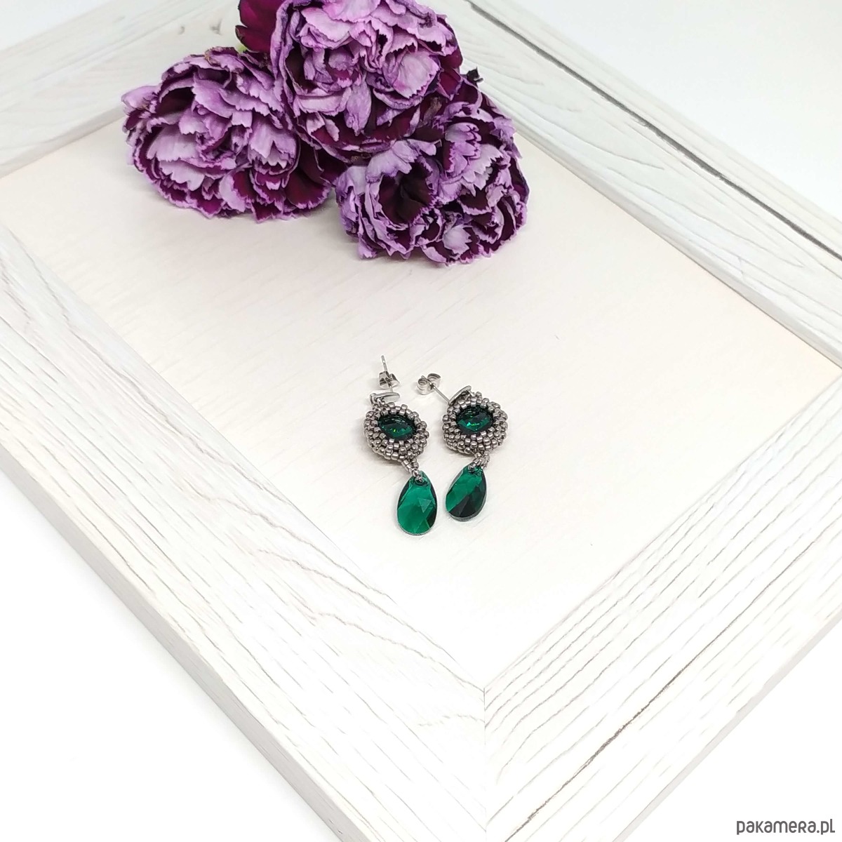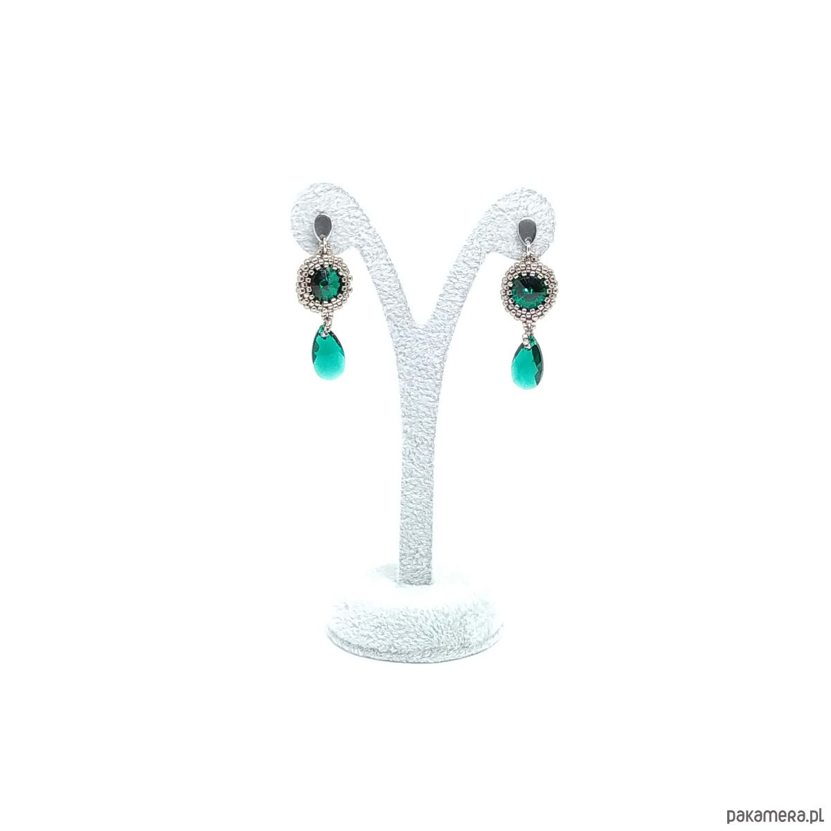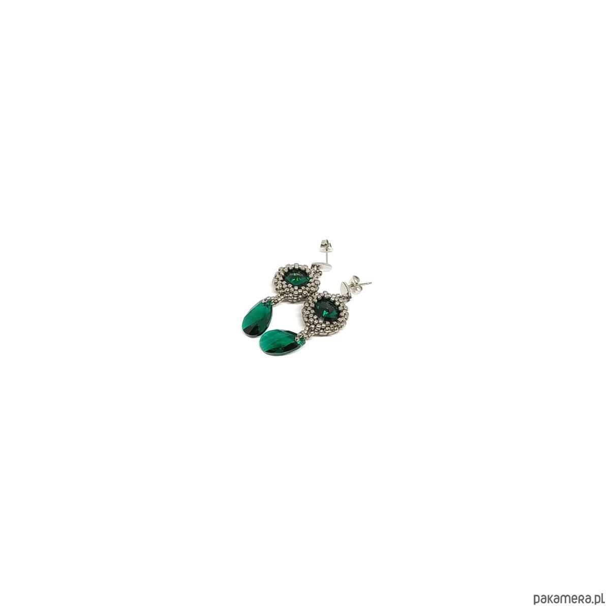 Twinkle, twinkle little star... - te słowa popularnej kołysanki o migoczącej gwiazdce idealnie pasują do blasku kryształków Swarovski, które stanowią serce tych niedużych i błyszczących kolczyków w kolorze emerald (butelkowa zieleń). Srebrny - niklowy kolor maleńkich, szklanych koralików podkreśla ich czar.
