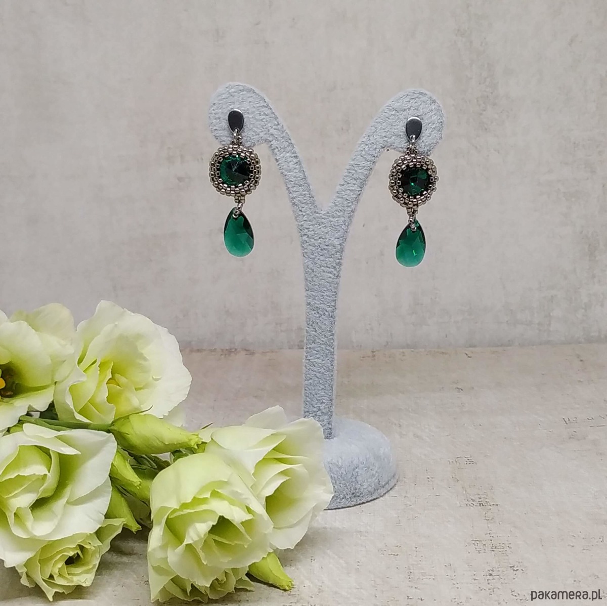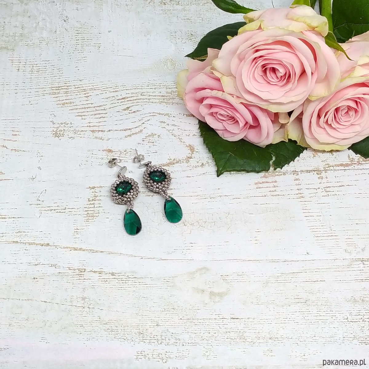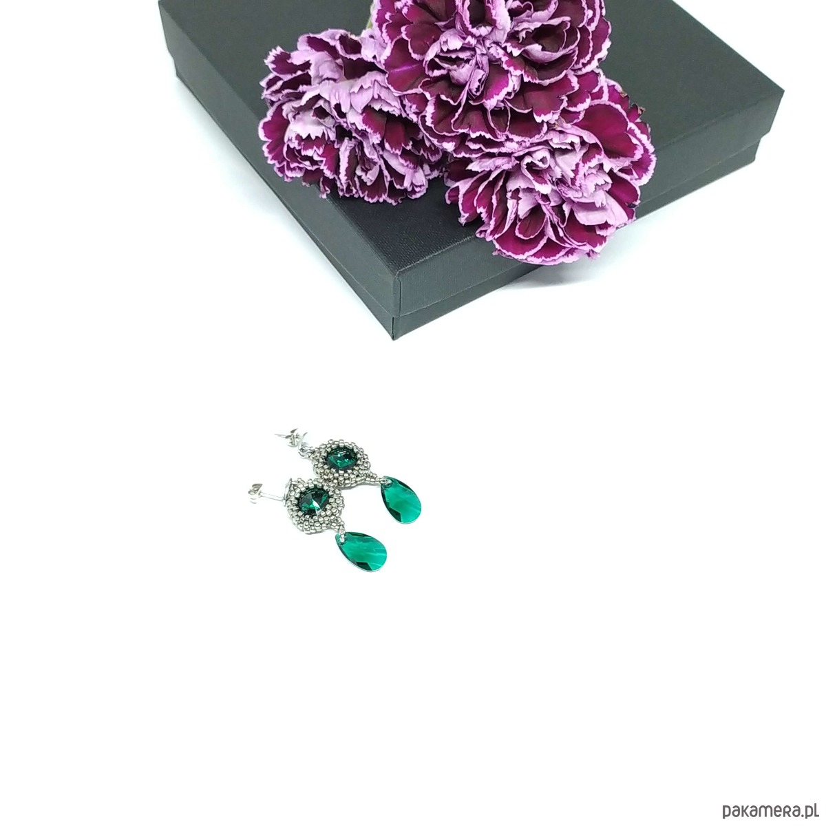 Twinkle, twinkle little star... - te słowa popularnej kołysanki o migoczącej gwiazdce idealnie pasują do blasku kryształków Swarovski, które stanowią serce tych niedużych i błyszczących kolczyków w kolorze emerald (butelkowa zieleń). Srebrny - niklowy kolor maleńkich, szklanych koralików podkreśla ich czar.