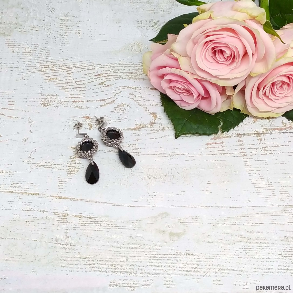 Twinkle, twinkle little star... - te słowa popularnej kołysanki o migoczącej gwiazdce idealnie pasują do blasku kryształków Swarovski, które stanowią serce tych niedużych i błyszczących kolczyków w kolorze czarnym. Srebrny - niklowy kolor maleńkich, szklanych koralików podkreśla ich czar.
