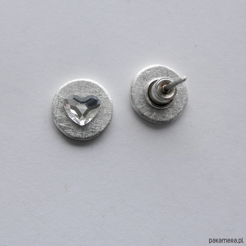 Serduszko kolczyki - uroczy dodatek . Idealne dla kobiet, które cenią ładną oraz oryginalną biżuterię. Kolczyki na sztyftach wykonane są z srebra, kryształ SWAROVSKI ELEMENTS (Wymiary: 6 mm ). Srebro zmatowione. Szerokość 1 cm. Waga - ok. 2g