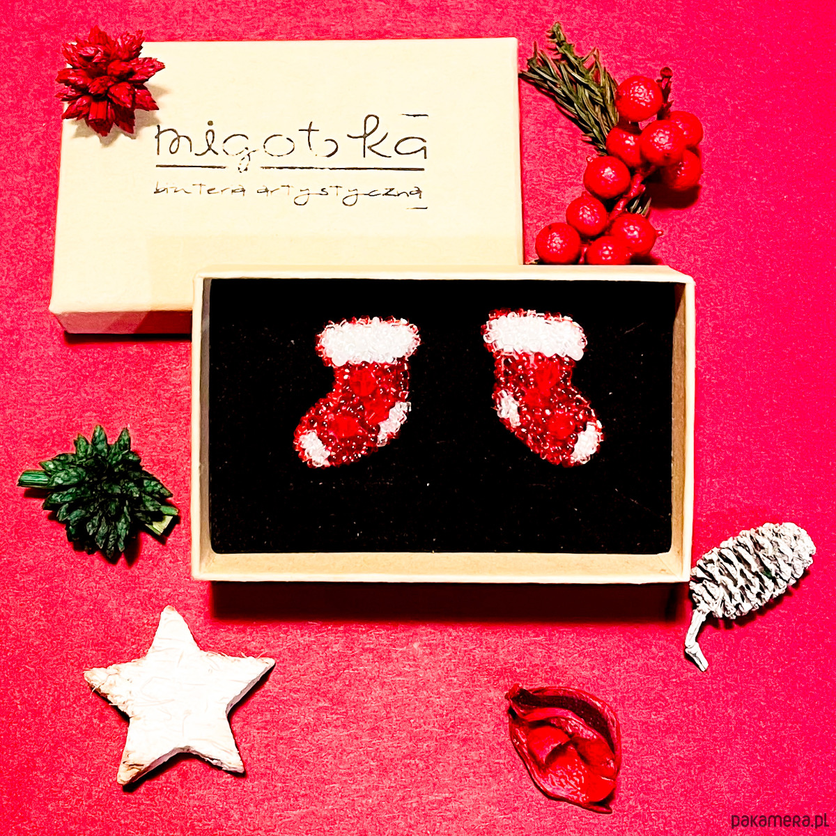 Wprowadź odrobinę świątecznej magii do swojej stylizacji! Te wyjątkowe kolczyki zostały stworzone techniką haftu koralikowego z wykorzystaniem wysokiej jakości drobnych koralików. Każda para to małe, biżuteryjne dzieło sztuki – lekkie, pełne detali i idealne do noszenia przez cały zimowy sezon.