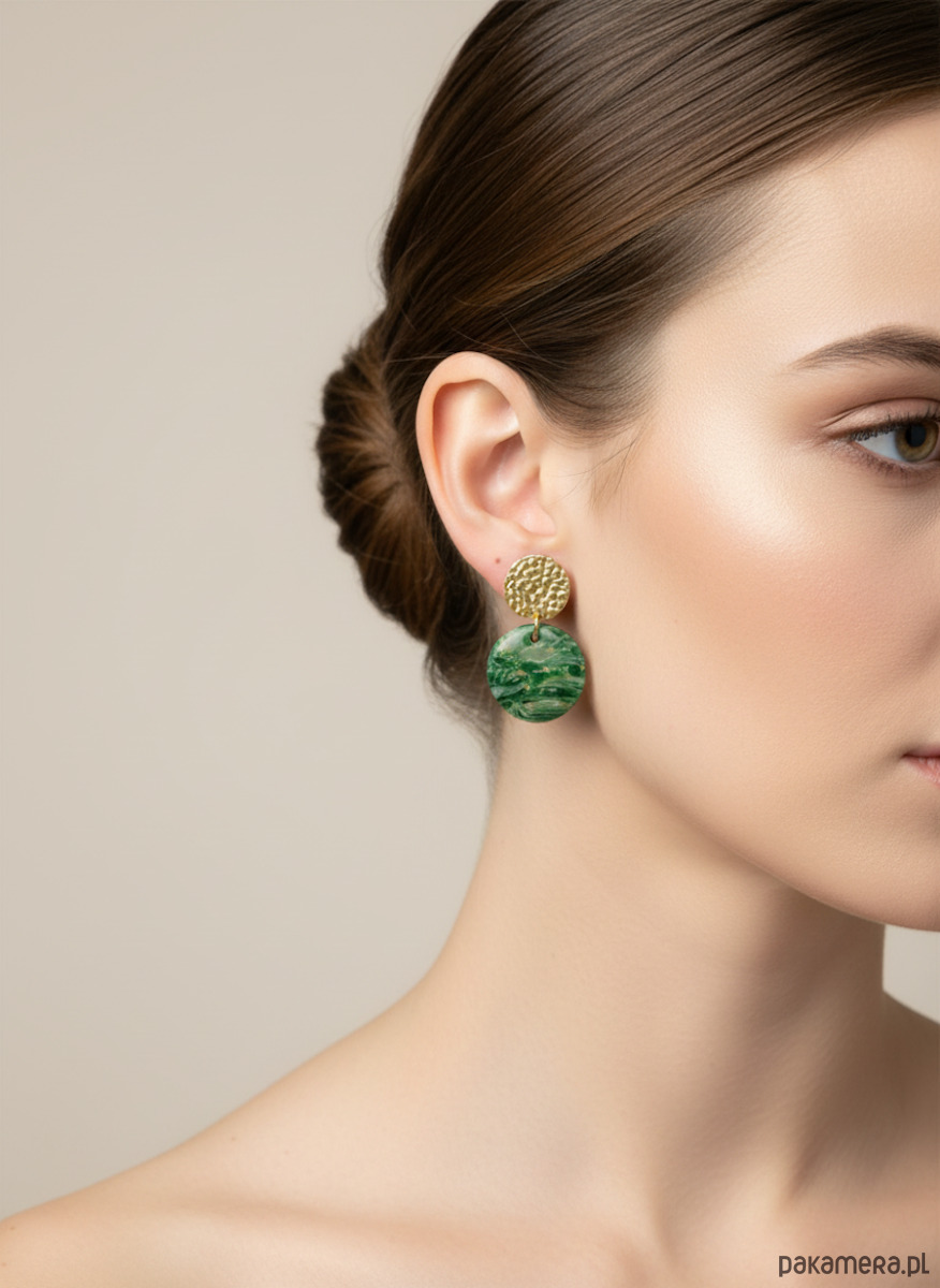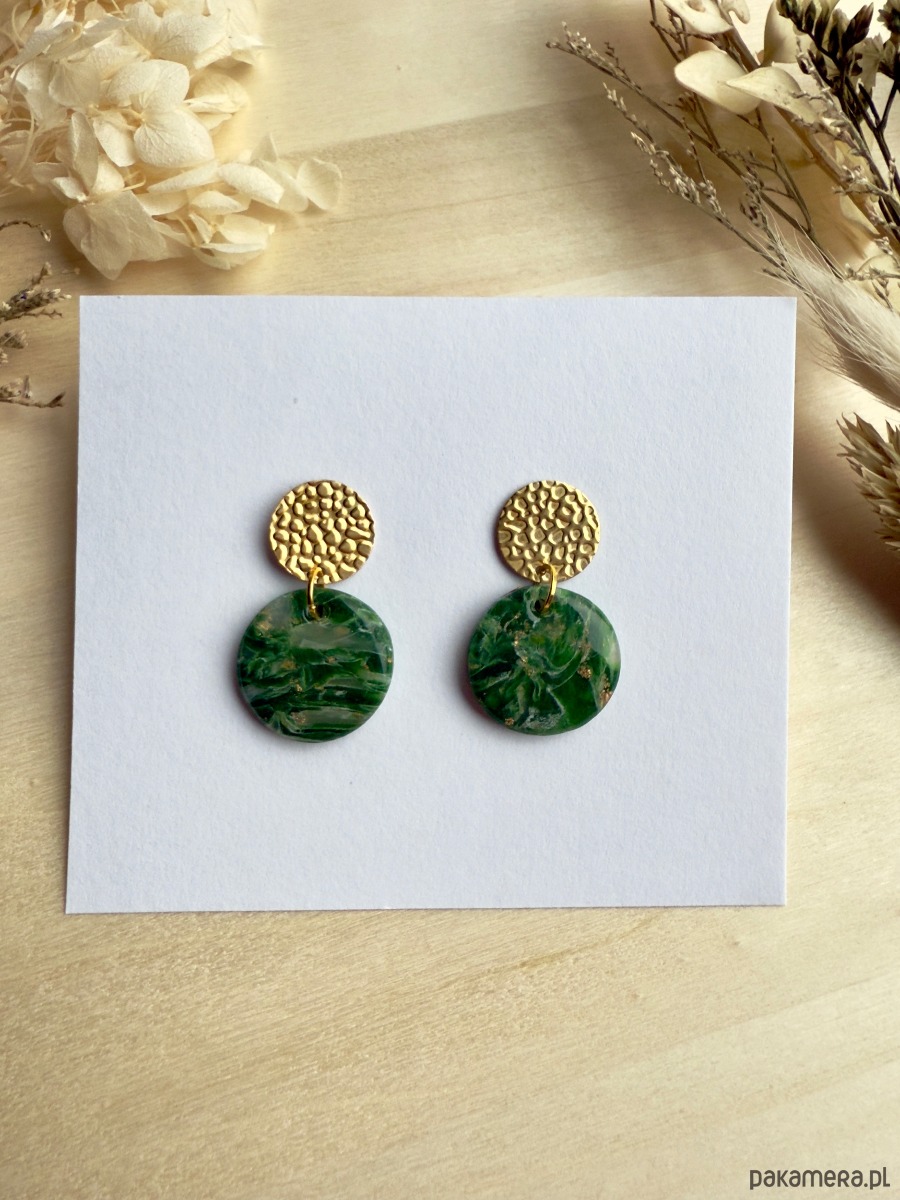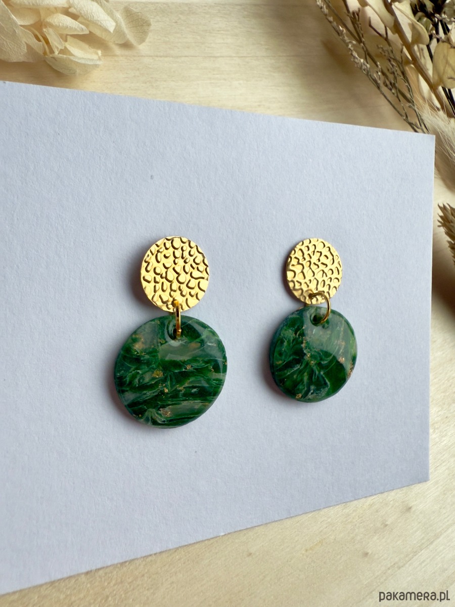 Piękne, ręcznie robione kolczyki inspirowane stylem art deco. Połączenie zielonej gliny polimerowej i złotych elementów sprawia, że są eleganckie i wyjątkowe.