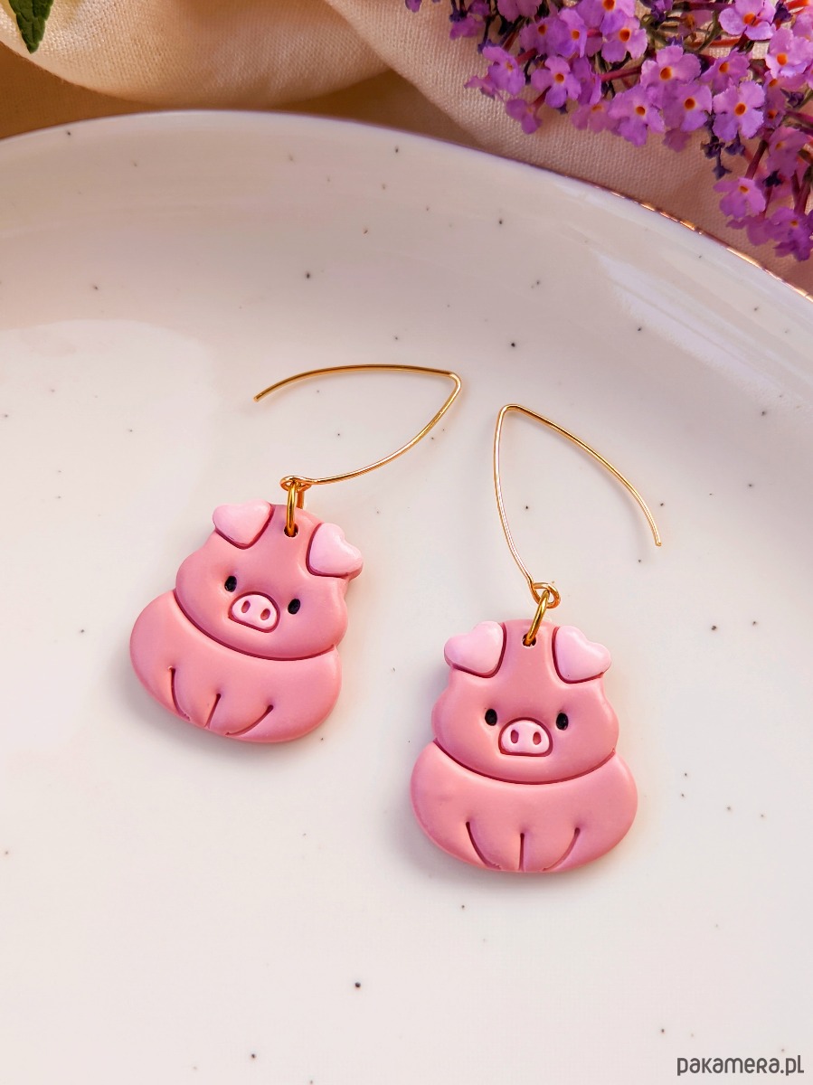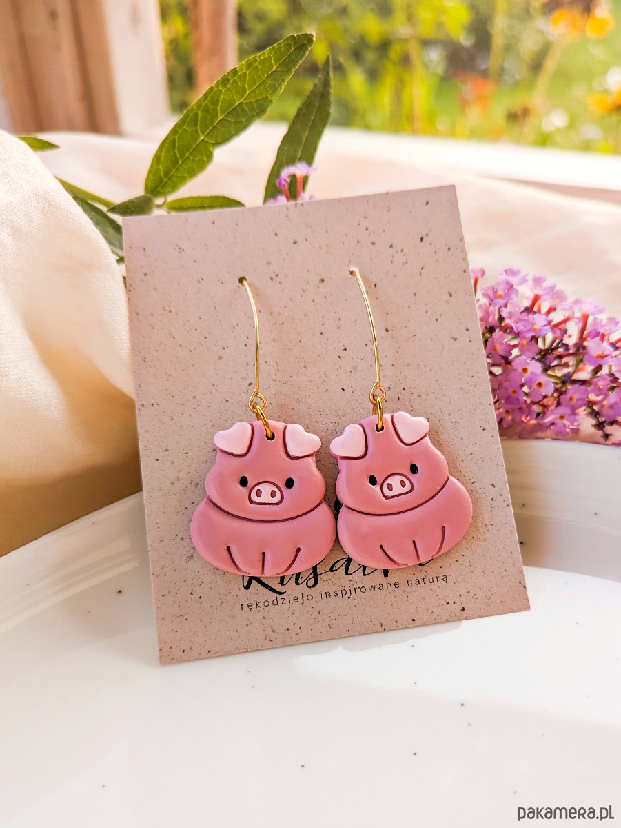 Kolczyki świnki w rustykalnym stylu z wizerunkiem świnki w stylu boho