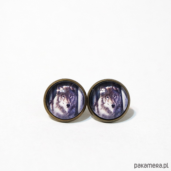Grafika ukryta w delikatnych kolczykach, pod osłoną przeźroczystego półokrągłego szkiełka.