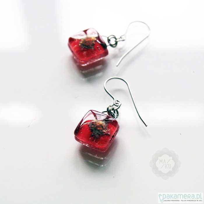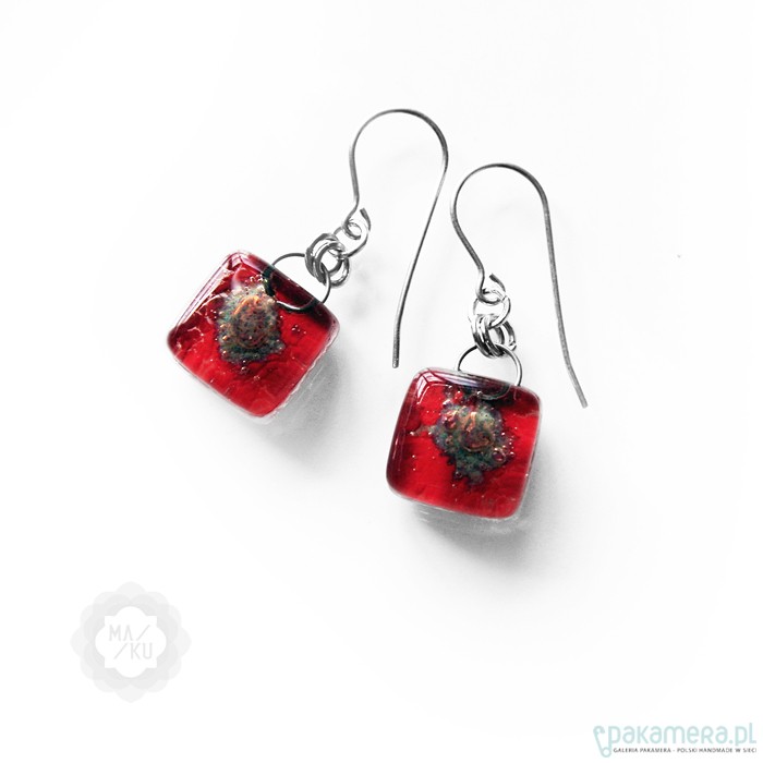 Kolczyki ze szklanymi oczkami wykonanymi metodą fusingu. Piękne, żywe kolory czynią je niezwykle ciekawym i przyciągającym uwagę dodatkiem. Lekkie, wygodne, pięknie prezentują się na uchu! Kolory mogą nieznacznie różnić się w rzeczywistości. Wielkość szklanego elementu ok 1x1 cm. Bigle ze stali chirurgicznej 316L- antyalergiczne. Do każdych kolczyków można skompletować wisiorek lub bransoletkę.