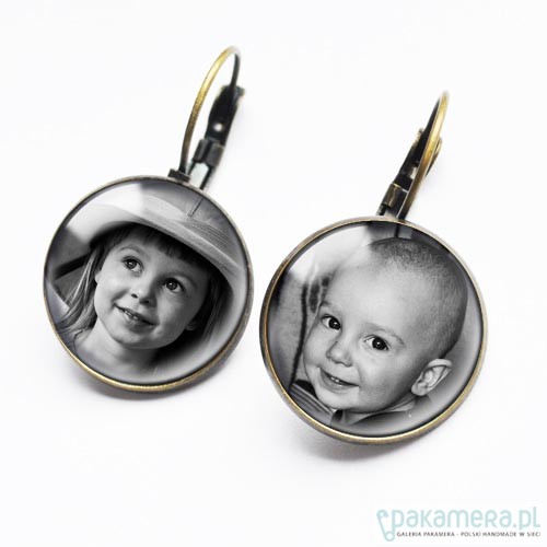 Kolczyki Z TWOIMI ZDJĘCIAMI to bardzo kobiece malutkie dzieła sztuki w starym stylu. Obrazki pod szkiełkiem to miniatury Twoich zdjęć! Wysyłasz na mojego maila zdjęcie swoich dzieci, ukochanego czy swoje własne lub z ulubionym motywem, a ja je obrabiam komputerowo (np. na czarno białe, sepię) i tworzę z nich niepowtarzalne kolczyki i piękną pamiątkę! Możliwość zamówienia kolczyków w kolorze srebra!