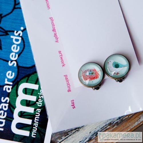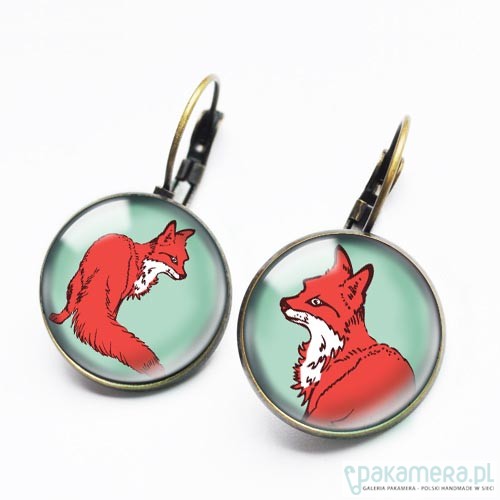 Kolczyki FOX to bardzo kobiece i malutkie dzieła sztuki, które łączą nowoczesność z odrobiną antycznego powiewu. Obrazki pod szkiełkiem to słodka grafika. Kolczyki są ładnie pakowane w folię przeźroczystą wraz z autorską kartką pocztową, tak że można je wysłać także jako prezent (na przykładowym zdjęciu z inną parą kolczyków). Wymiary: Długość kolczyków 3 cm Grafika 18 mm Wykorzystane materiały: baza kolczyków w kolorze antycznego brązu miniaturka grafiki na wysokiej jakości papierze fotograficznym Metoda produkcji: handmade by muamua design