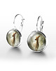 Grafika ukryta w prostych, eterycznych kolczykach, pod osłoną przeźroczystego półokrągłego szkiełka.
