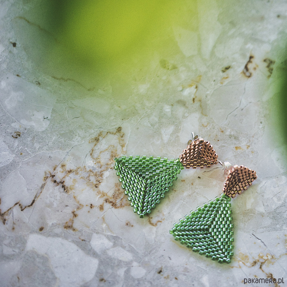Trójkątne zielone kolczyki