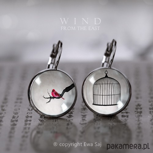 Oryginalne, zaczarowane, romantyczne kolczyki. Miniaturki moich grafik ukryte pod szklaną kopułą organicznego szkiełka. Długość kolczyków 3 cm średnica graficznej miniatury 16 mm. baza kolczyków w kolorze ciemnego srebra( gun metal ). Wolna od niklu i ołowiu (antyalergiczna). Projekt autorski, wszystkie prawa zastrzeżone.