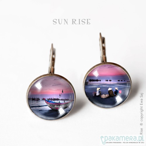 Oryginalne, zaczarowane, romantyczne kolczyki. Miniaturki moich fotografii ukryte pod szklaną kopułą organicznego szkiełka. Długość kolczyków 3 cm średnica graficznej miniatury 18 mm. Baza w kolorze starego złota. Zrób sobie prezent!