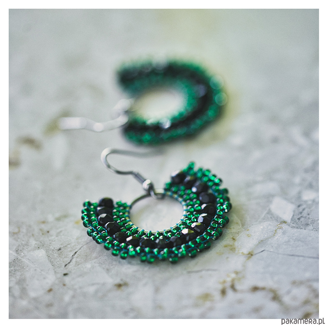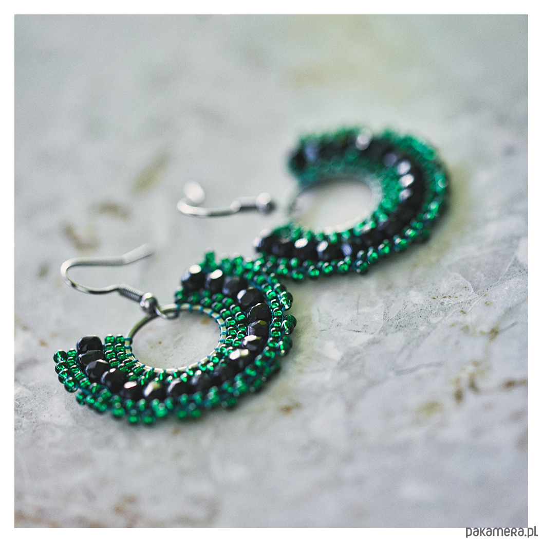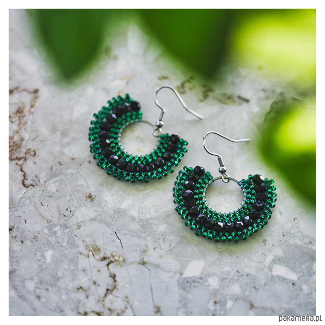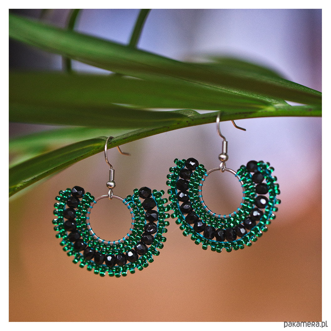 Ręcznie wykonane zielono-czarne kolczyki to połączenie elegancji i oryginalności. Zostały wykonane z użyciem trudnej i czasochłonnej techniki beadingu, łącząc zielone koraliki czeskie z czarnymi kryształkami szklanymi. Kolczyki prezentują się stylowo, a ich lekka konstrukcja sprawia, że noszenie ich jest wygodne. Zieleń i czarny dodają kolczykom orientalnego charakteru i elegancji.