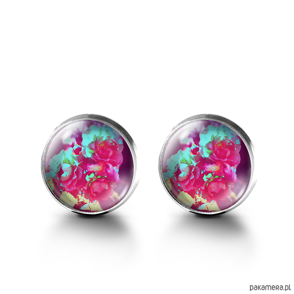 Grafika zamknięta w oryginalnych kolczykach, pod osłoną przeźroczystego półokrągłego szkiełka.
