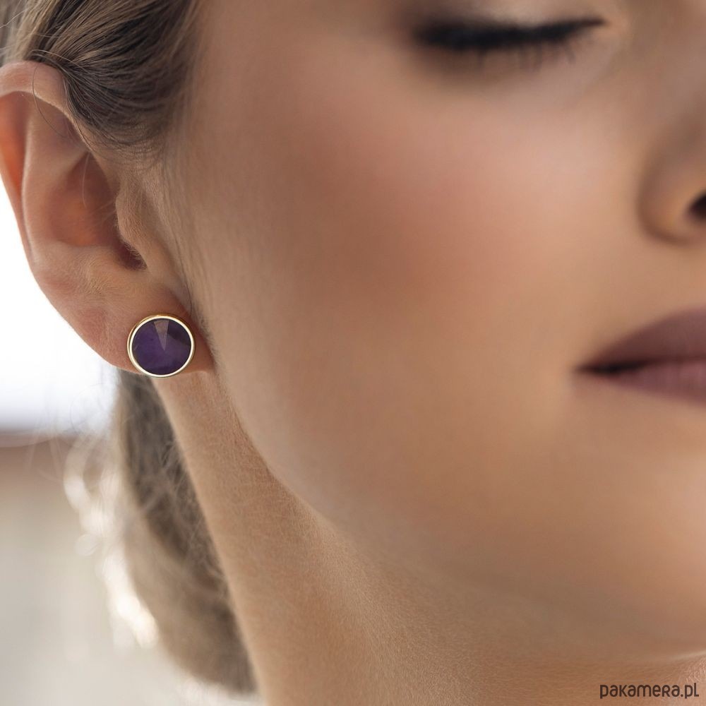 Kolczyki wykonane są z wysokiej jakości pozłacanej stali szlachetnej, która jest materiałem antyalergicznym. Pozłocenie nie zmienia koloru podczas użytkowania.Wymiary:Kamienie: AmetystŚrednica kolczyków: 1,2 cmMateriał: antyalergiczna stal szlachetna