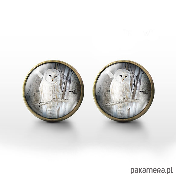 Grafika zamknięta w oryginalnych kolczykach, pod osłoną przeźroczystego półokrągłego szkiełka.