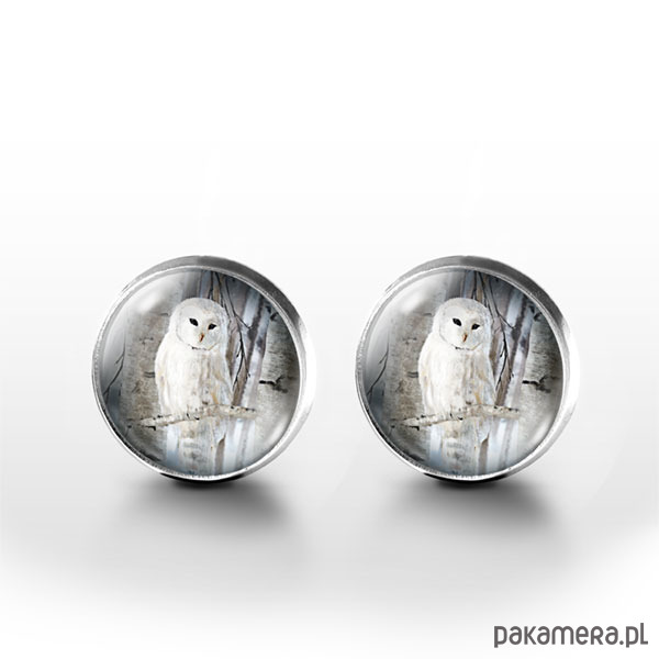 Grafika zamknięta w oryginalnych kolczykach, pod osłoną przeźroczystego półokrągłego szkiełka.