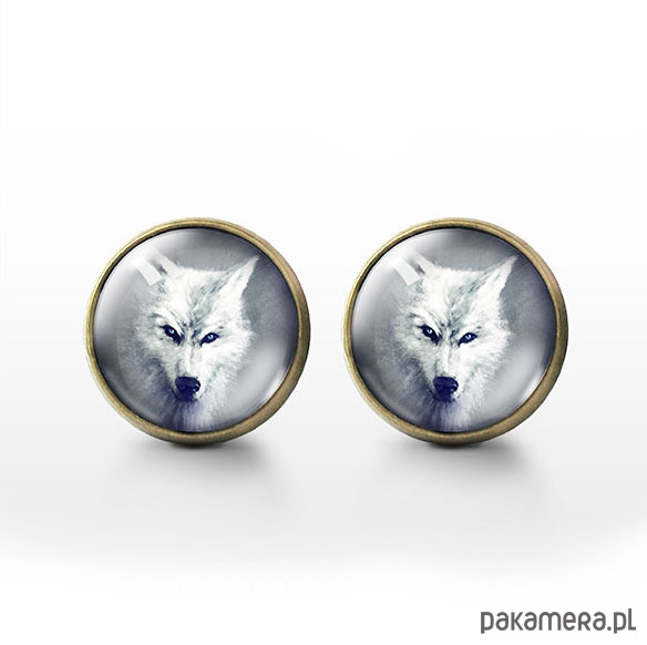 Kolczyki sztyfty - Biały wilk - brąz
