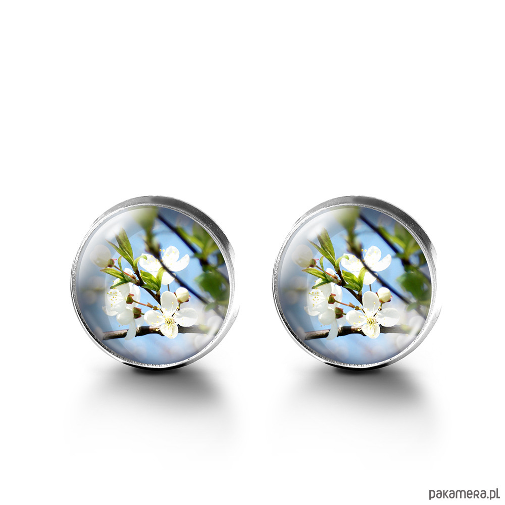 Grafika zamknięta w oryginalnych kolczykach, pod osłoną przeźroczystego półokrągłego szkiełka.
