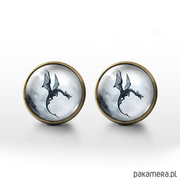 Kolczyki sztyfty - Czarny smok - brąz