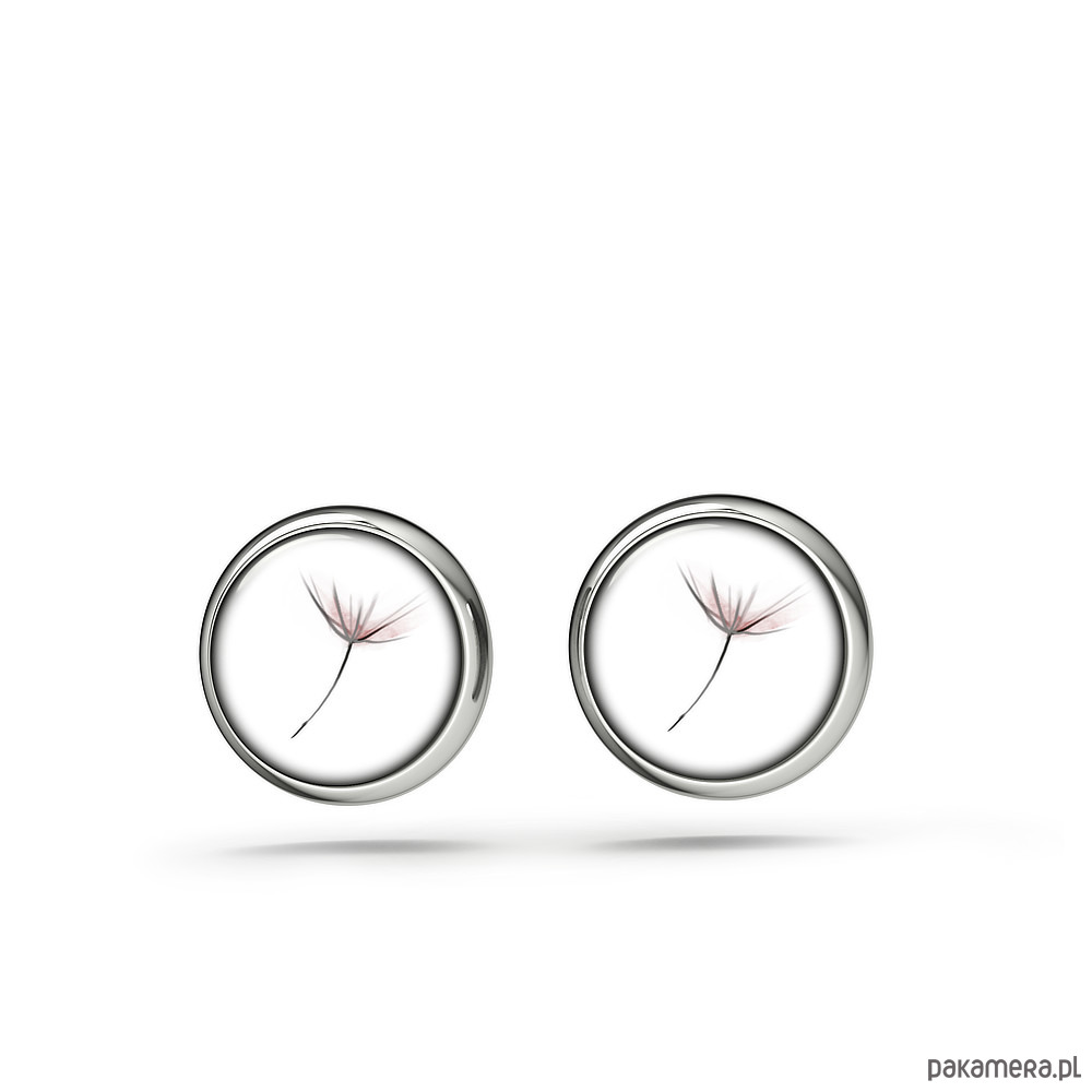 Grafika ukryta w delikatnych, malutkich kolczykach, pod osłoną przeźroczystego półokrągłego szkiełka.