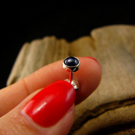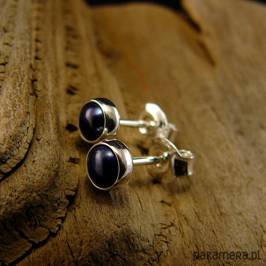 Delikatne niewielkie kolczyki sztyfty wykonane ręcznie ze srebra próby 925 oraz przepięknych naturalnych czarnych Pereł Biwa. Kolczyki mają średnicę 5 milimetrów. Polecam Nehesi