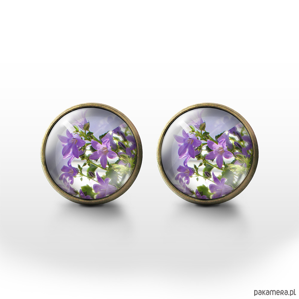 Kolczyki sztyfty - Fioletowy kwiat - brąz