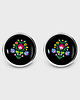 Grafika zamknięta w oryginalnych kolczykach, pod osłoną przeźroczystego półokrągłego szkiełka.