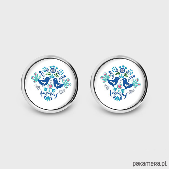 Kolczyki sztyfty - Folkowe ptaszki, niebieskie