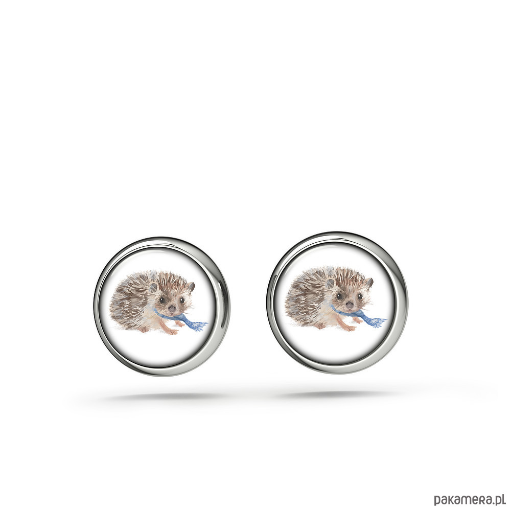 Grafika ukryta w delikatnych, malutkich kolczykach, pod osłoną przeźroczystego półokrągłego szkiełka.