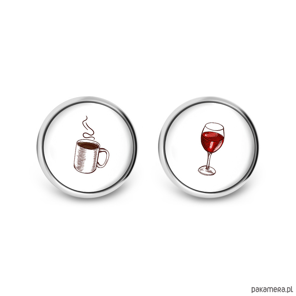 Kolczyki sztyfty - Kawa i wino - grafika