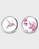 Grafika zamknięta w oryginalnych kolczykach, pod osłoną przeźroczystego półokrągłego szkiełka.