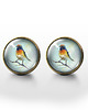 Grafika zamknięta w oryginalnych kolczykach, pod osłoną przeźroczystego półokrągłego szkiełka.