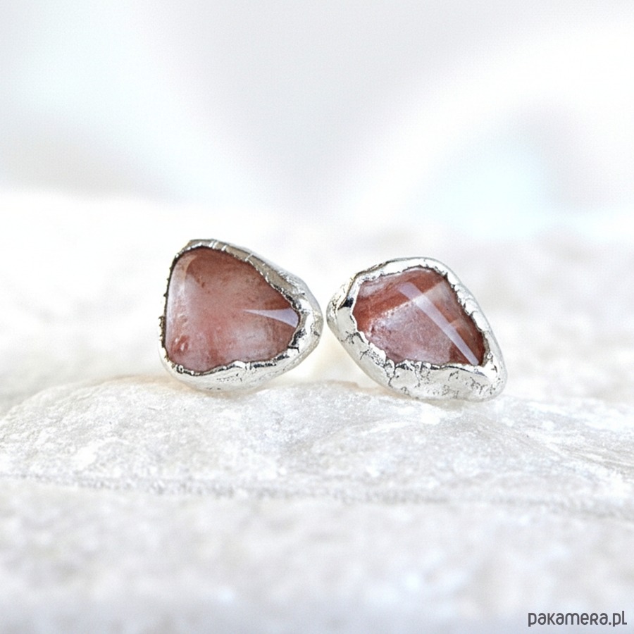 Kolczyki Sztyfty Kwarc Wiśniowy
