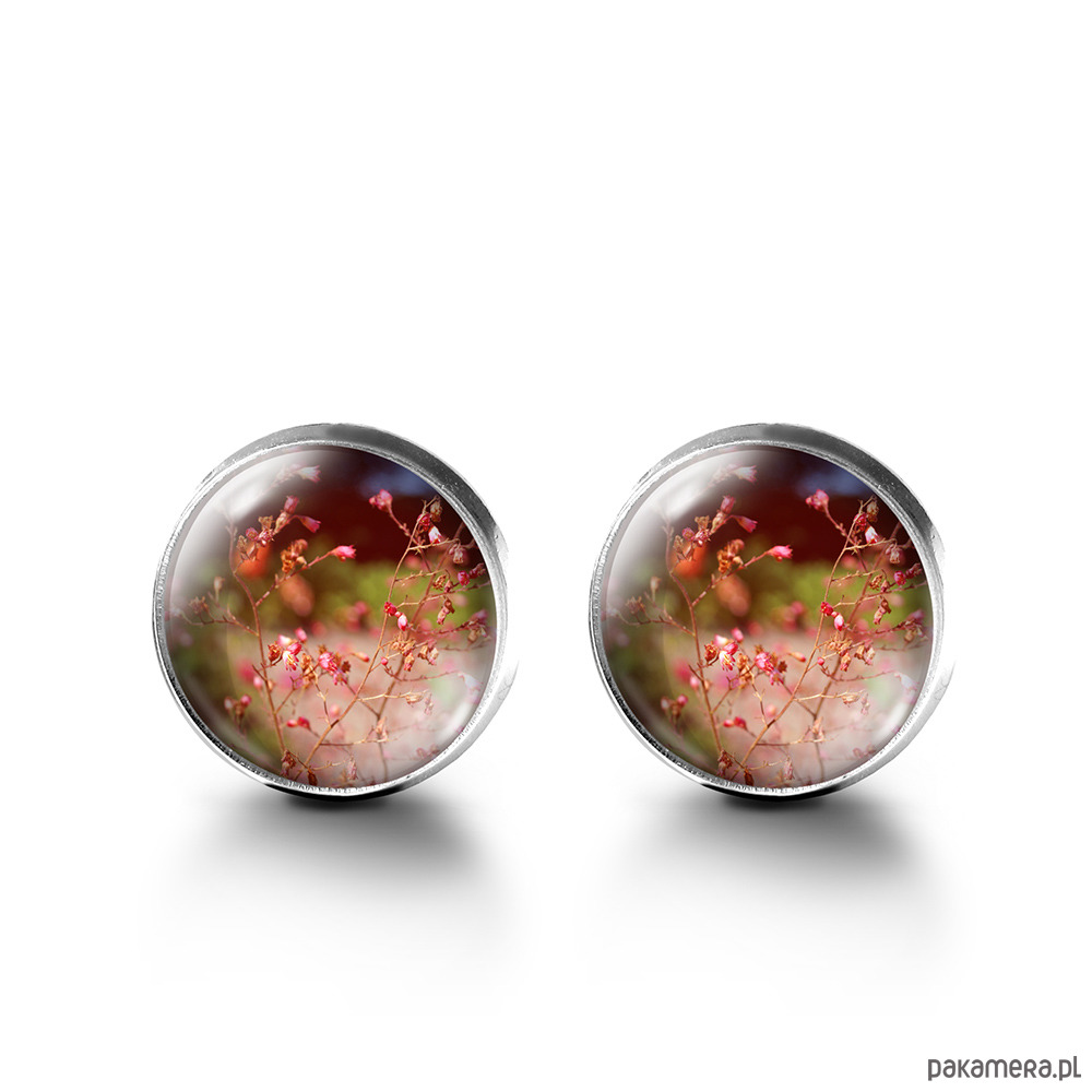 Grafika zamknięta w oryginalnych kolczykach, pod osłoną przeźroczystego półokrągłego szkiełka.