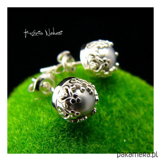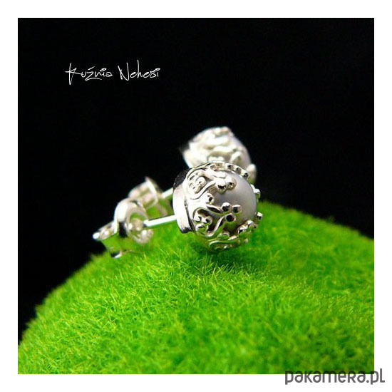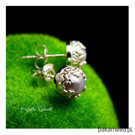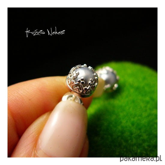Kolejna propozycja Drobinek tym razem z wyjątkowymi platynowymi naturalnymi Perłami Biwa. Kolczyki wkręty wykonane własnoręcznie od podstaw ze srebra tradycyjną technika jubilerską. Średnica kolczyka 7 mm. Jest to typ na sztyfcie zapinany na tzw – baranki. © Nehesi Design