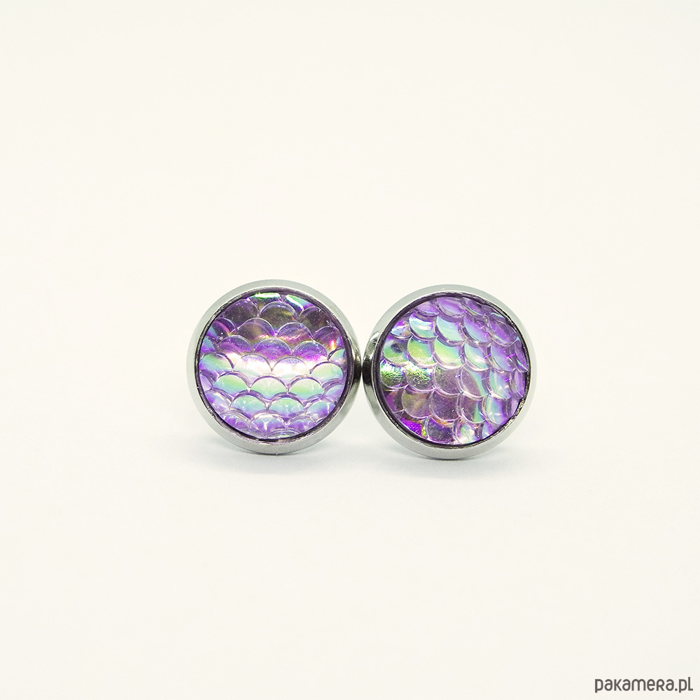 Kolczyki sztyfty - Łuski fioletowe - małe