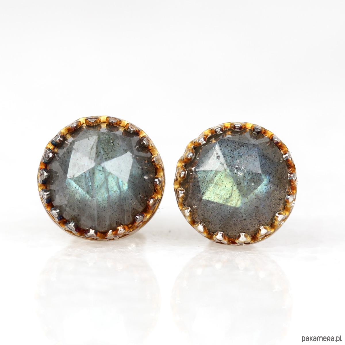 Kolczyki sztyfty Mignon z labradorytem w oksydzie złoto-tęczowej