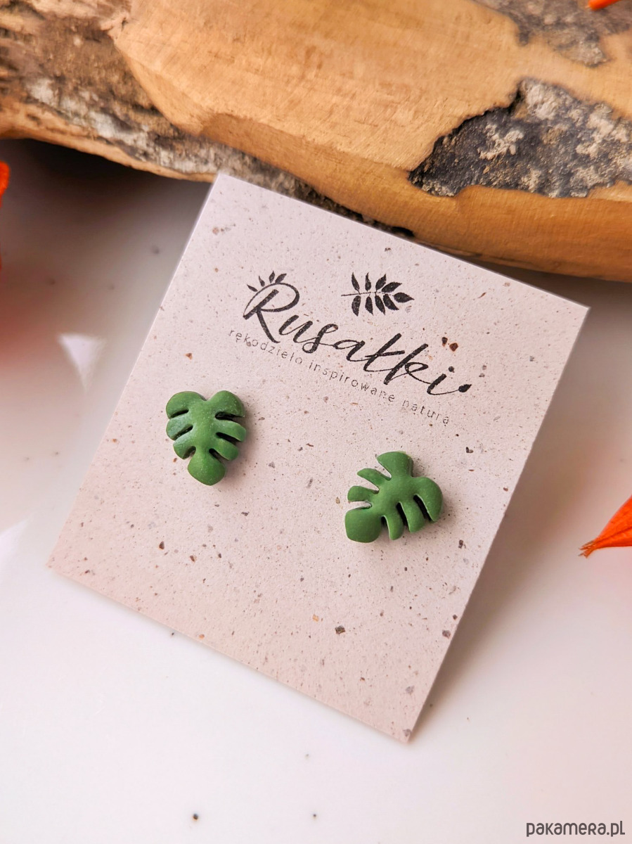 Kolczyki sztyfty monstery biżuteria w stylu jungle dla fanki roślin domowych