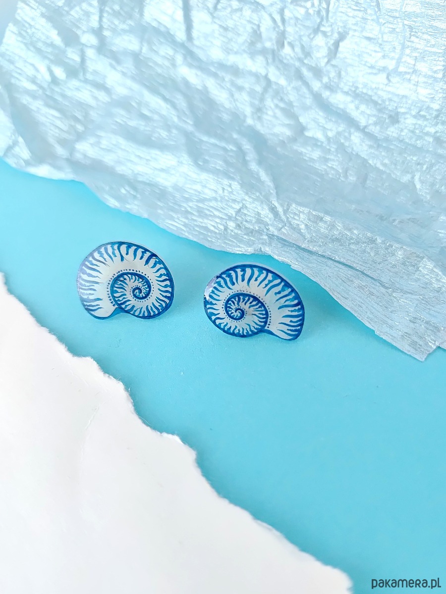 Kolczyki sztyfty Muszle amonitów niebieskie