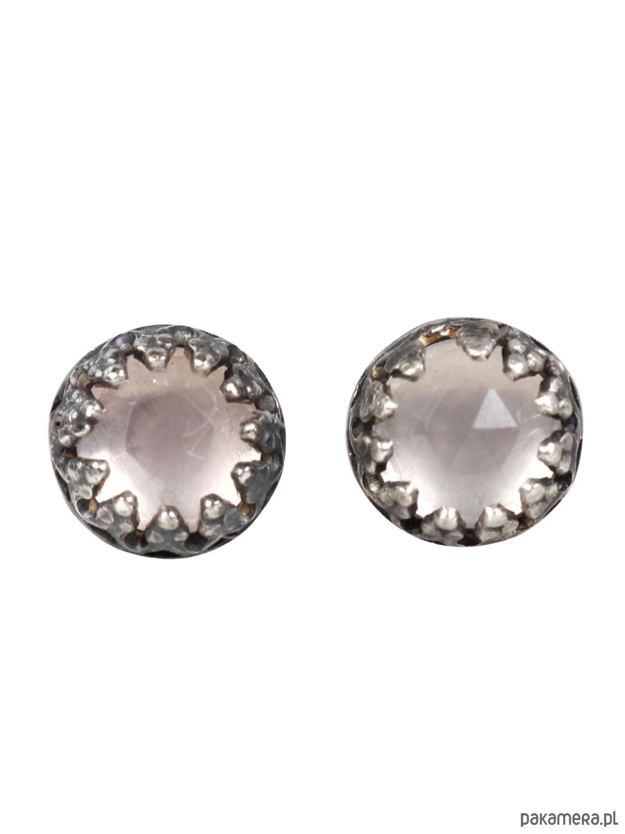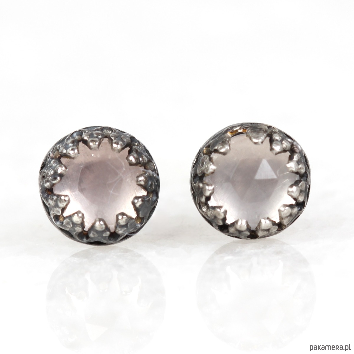 Kolczyki sztyfty oksydowane Petite z kwarcem różowym