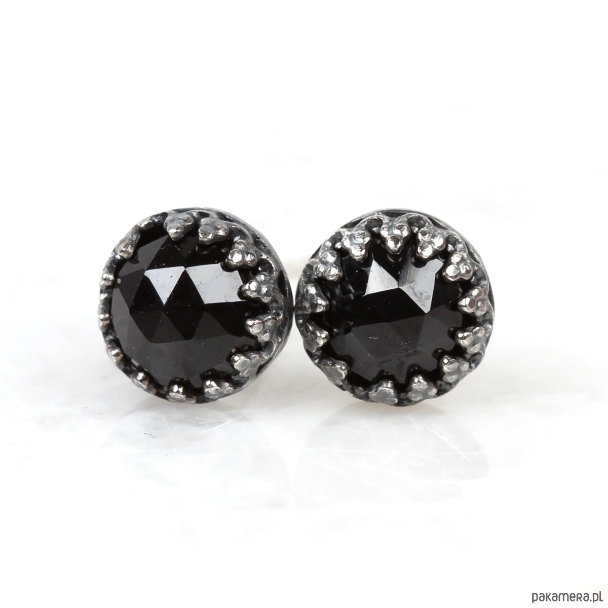 Ręcznie wykonane kolczyki ze srebra pokrytego ciemną oksydą ze spinelem