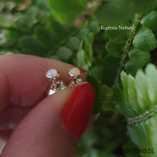 Delikatne niewielkie kolczyki sztyfty wykonane ręcznie ze srebra próby 925 oraz przepięknych Opali Etiopskich ze ślicznym ogniem. Kolczyki mają średnicę 3,2 milimetrów . Polecam Nehesi