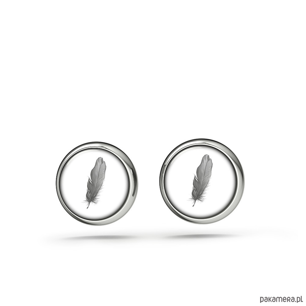 Grafika ukryta w delikatnych, malutkich kolczykach, pod osłoną przeźroczystego półokrągłego szkiełka.