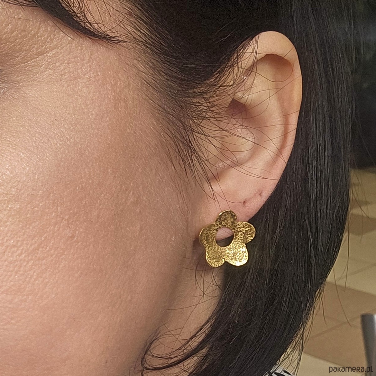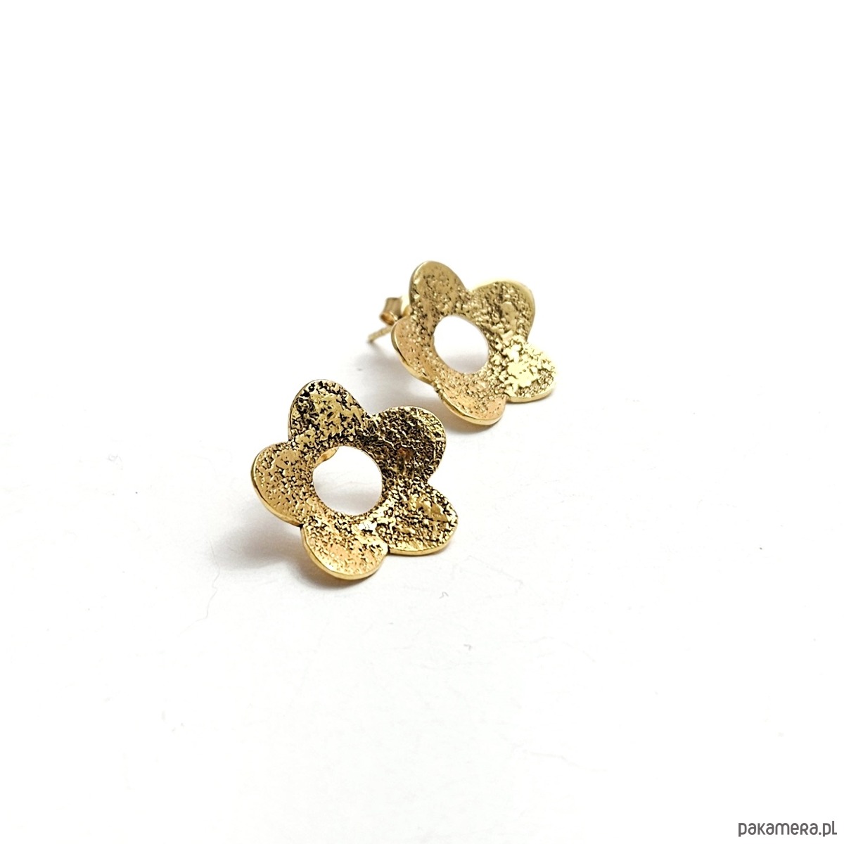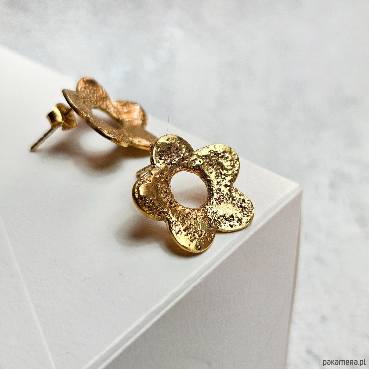 Oryginalne srebrne pozłacane kolczyki w kształcie kwiatka.