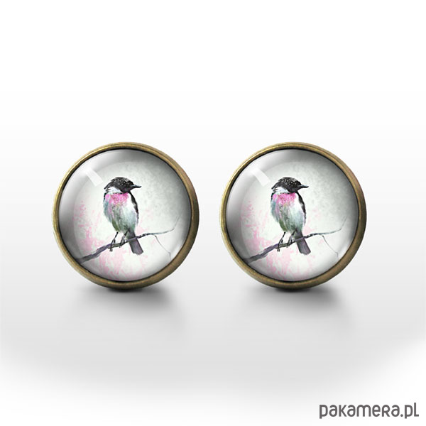Grafika zamknięta w oryginalnych kolczykach, pod osłoną przeźroczystego półokrągłego szkiełka.