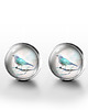 Grafika zamknięta w oryginalnych kolczykach, pod osłoną przeźroczystego półokrągłego szkiełka.