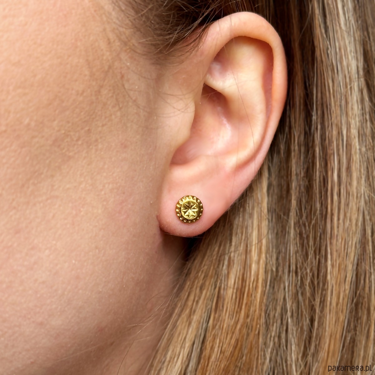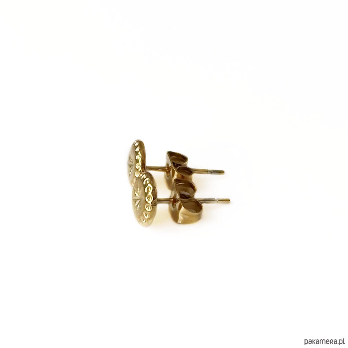 Kolczyki sztyfty ze stali chirurgicznej w kolorze złota.