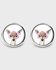 Grafika zamknięta w oryginalnych kolczykach, pod osłoną przeźroczystego półokrągłego szkiełka.