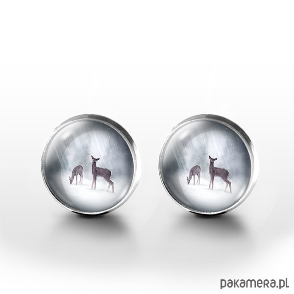 Grafika zamknięta w oryginalnych kolczykach, pod osłoną przeźroczystego półokrągłego szkiełka.